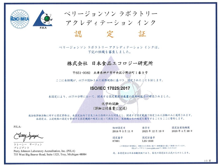 当社は、ISO/IEC17025:2017 「試験所及び校正機関の能力に関する一般要求事項」の認定を取得しており、この規格が求める内容を理解した上で、項目に応じた各種試験所認定の取得や、各種法律に基づいた衛生検査所、試験検査機関や登録検査機関等の登録を行っております。